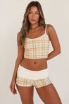 The Rad Plaid Tankini Full Set is a comfortable, stylish favorite—pairing our Hanalei tankini top with Lele full shorts for a flattering, relaxed fit. Styled in Rad Plaid/Ivory, this set is ideal for poolside lounging or active beach days.