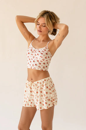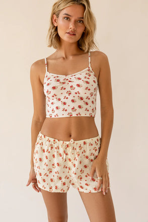 A classic cropped camisole top made in our extra cozy silky ribbed fabric. Featuring thin straps and a ruching detail at the center, pair this top with our matching Summer Nights Skirt for the perfect set.