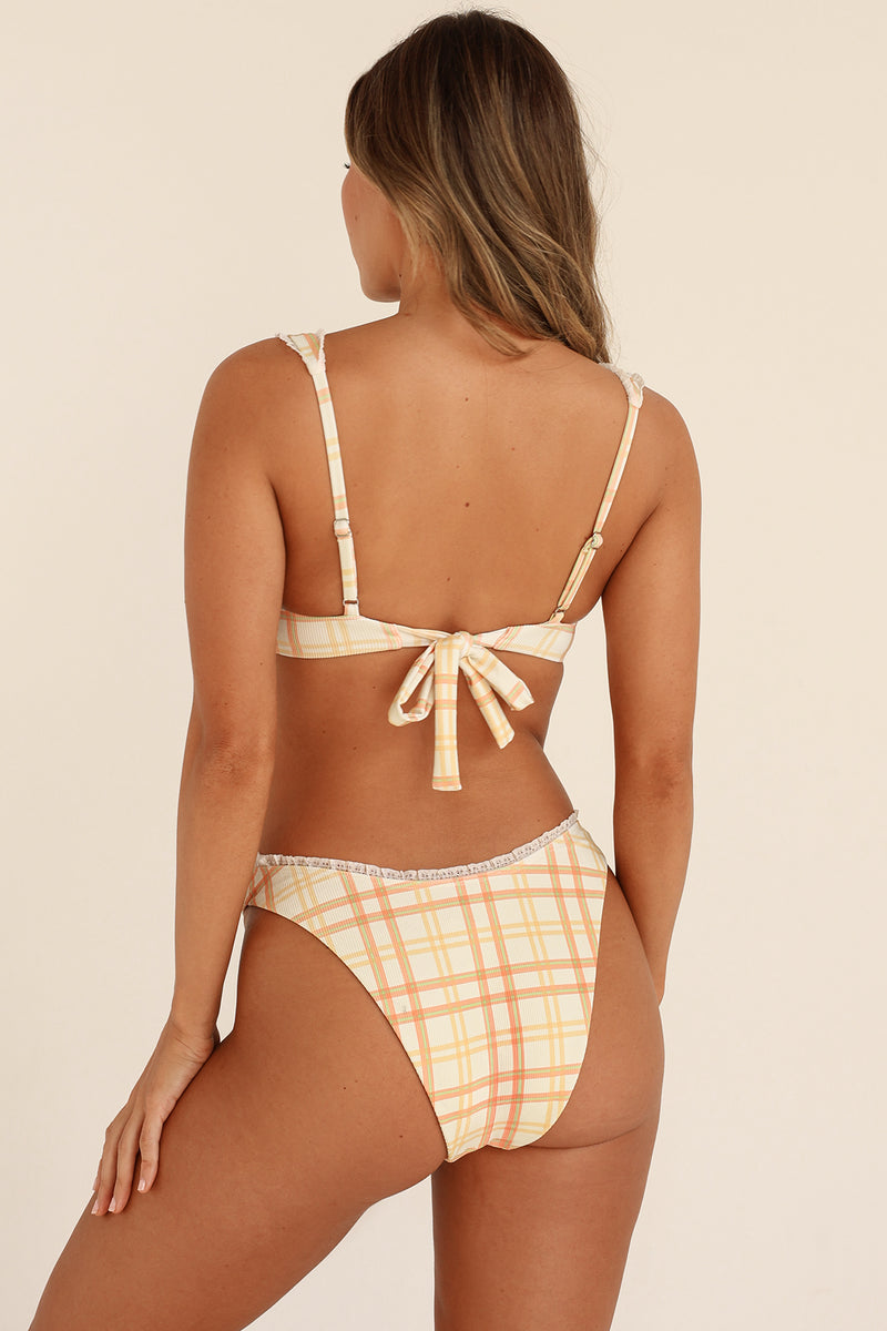 A fun new take on our underwire bikini top. The Priscilla Top will keep you supported while looking cute with its matching mini bow and lace trim details. Pair with our Everly Bottom to make the perfect set.