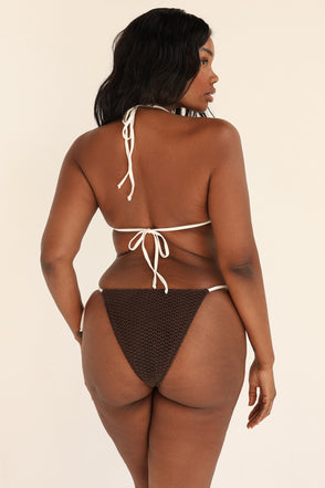 Our tried and true triangle tie back top, featuring extra bow and stitching details. Its classic cut and simple silhouette will have you always reaching for it in your bikini drawer. This top pairs best with our new Bondi Bottoms.
