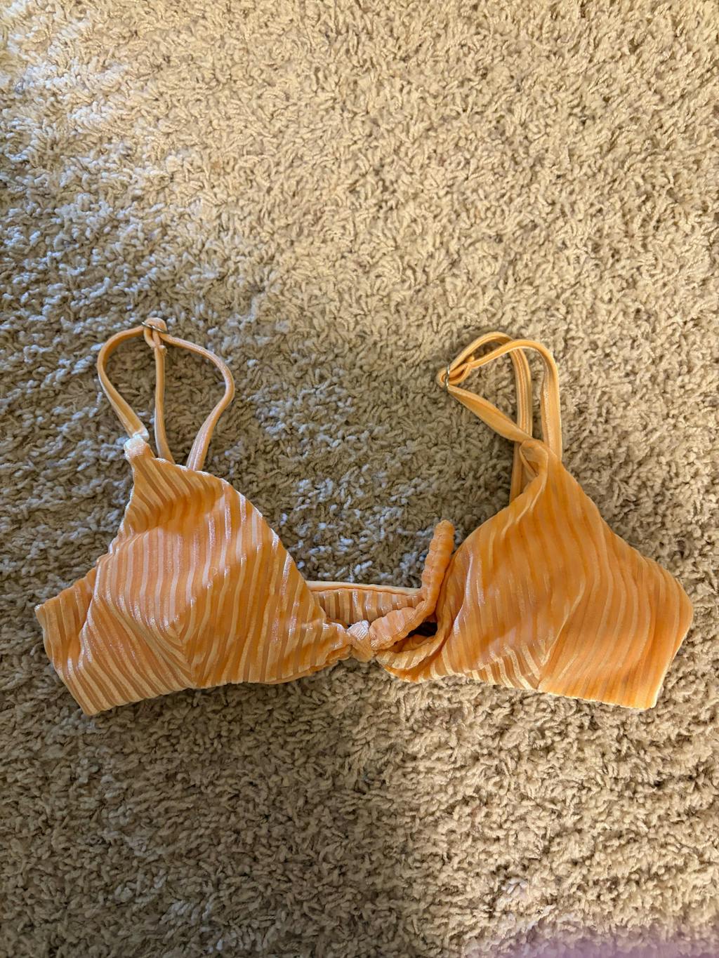 I got an underwire bikini top. It had pink and white patterning. It was exactly what I anticipated and I'm very happy with it. the pattern and fit is great. I really wasn't expecting to find the perfect bikini through a free bikini drop and this was great quality and a great design for the price