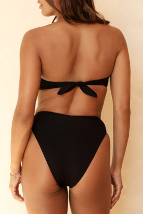 Our new bandeau-style bikini top with a knot detail at the center. Pairs perfectly with our new Audrey Bottom for a matching fit.
