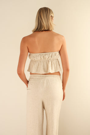 A strapless crop top with an adjustable tie at the center. Pairs perfectly with our Dolce Notte Pants.