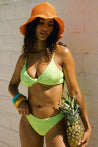 Moderately cheeky and high-cut leg bikini bottoms with a mid-rise waistline. Your next bikini bottom staple. The Nocturnal Bottom is one of our most versatile styles, but pair with our matching Zen Top or West Coast Top for the perfect new set.