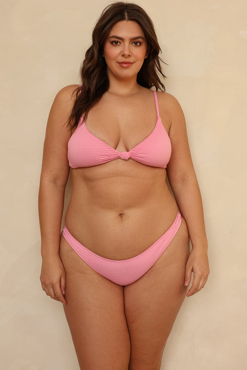 A twist on the classic. The Zen Top features triangle cups, knot detailing at the center, and a new and improved fit to enhance your curves while keeping you fully supported during all your swim sessions. The Zen Top pairs well with our matching Nocturnal Bottom.