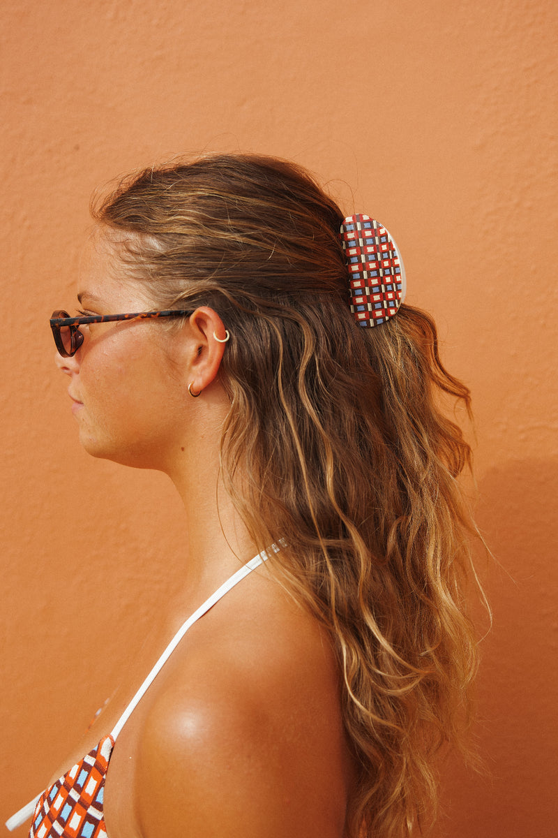 Our gingham blends recycled nylon with polyester for a soft, stretchy fabric featuring a timeless pattern. Comfortable and versatile, it’s designed for both style and function.
