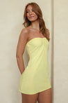 Meet your new fave cover-up—featuring a scrunch detail at the center of its strapless silhouette, this mini dress will be your new go-to this season.