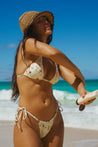 A classic scrunch bikini bottom featuring matching colorful beads on each side string. Pairs well with our matching Bali Top to complete your set.