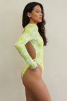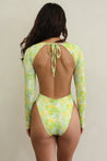 A sexy take on a timeless silhouette. This one piece features a high leg cut and scoop neck with long sleeves to keep you warm during your surf sessions.