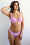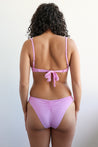 A fun new take on our underwire bikini top. The Priscilla Top will keep you supported while looking cute with its matching mini bows, lace trim details and eyelet fabrics. Pairs well with our Luisa Shorts.