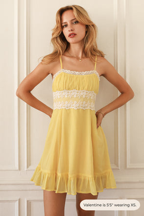 Our new sundress features the cutest lace overlay and trim, stretchy fabric at the back and adjustable straps for a customizable fit.