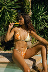 A timeless triangle-style bikini top featuring fun beading at the center and on each side. Bali pairs best with our Bora Bottom or Nocturnal Bottom.
