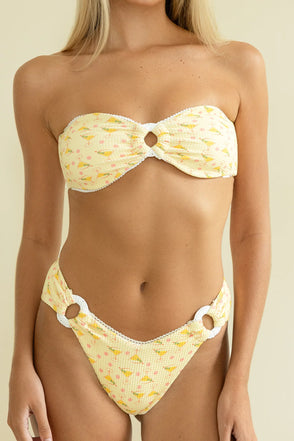 Our Taya Bottom is the perfect cheeky bikini bottom, and it commands attention with its cute double-ring details. Perfect to pair with our matching Lotus Top!