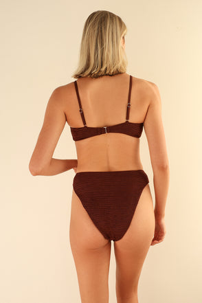 A twist on the classic. The Zen Top features triangle cups, knot detailing at the center, and a new and improved fit to enhance your curves while keeping you fully supported during all your surf sessions. The Zen Top pairs well with our matching Nocturnal Bottom.