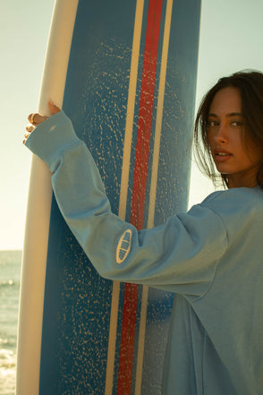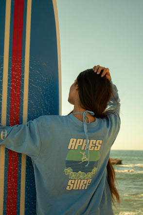 Ride the wave of sustainability with our new crewnecks designed in collaboration with Save our Surf—an organization that removes 1lb of plastic from the ocean with each crewneck purchase. Not only were the graphics designed to promote sustainability, but the Apres Surf Crewneck is made from organic cotton and recycled plastic water bottles, so you can feel cozy knowing you’re truly making a splash for cleaner oceans.