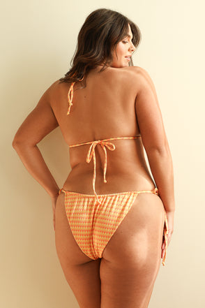 Our low-waist tie bikini bottom with an adjustable scrunch waist for customizable coverage, now featuring a reversible design. Pair with our matching Palm Top to complete the set.