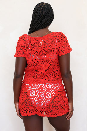 A mini crochet skirt featuring a tie in the front for an adjustable fit. Wear it high-waisted or lower on the hips for a cute summer cover-up. Pairs perfectly with our matching Salt Life Top.