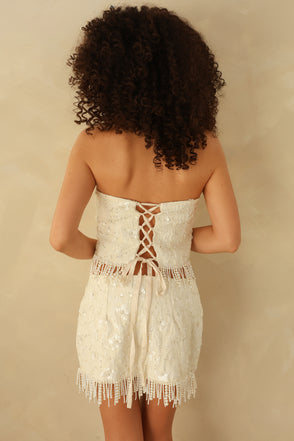 A flattering bandeau-style kini top with adjustable tie straps.