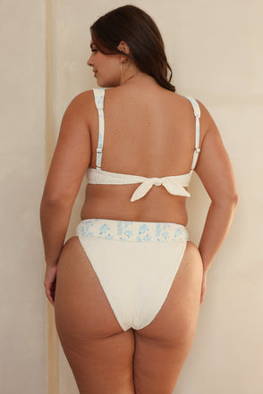 A classy high-leg and high-waisted bikini bottom featuring a thick waistband for extra style and comfort. Pairs well with our matching Verona Top.