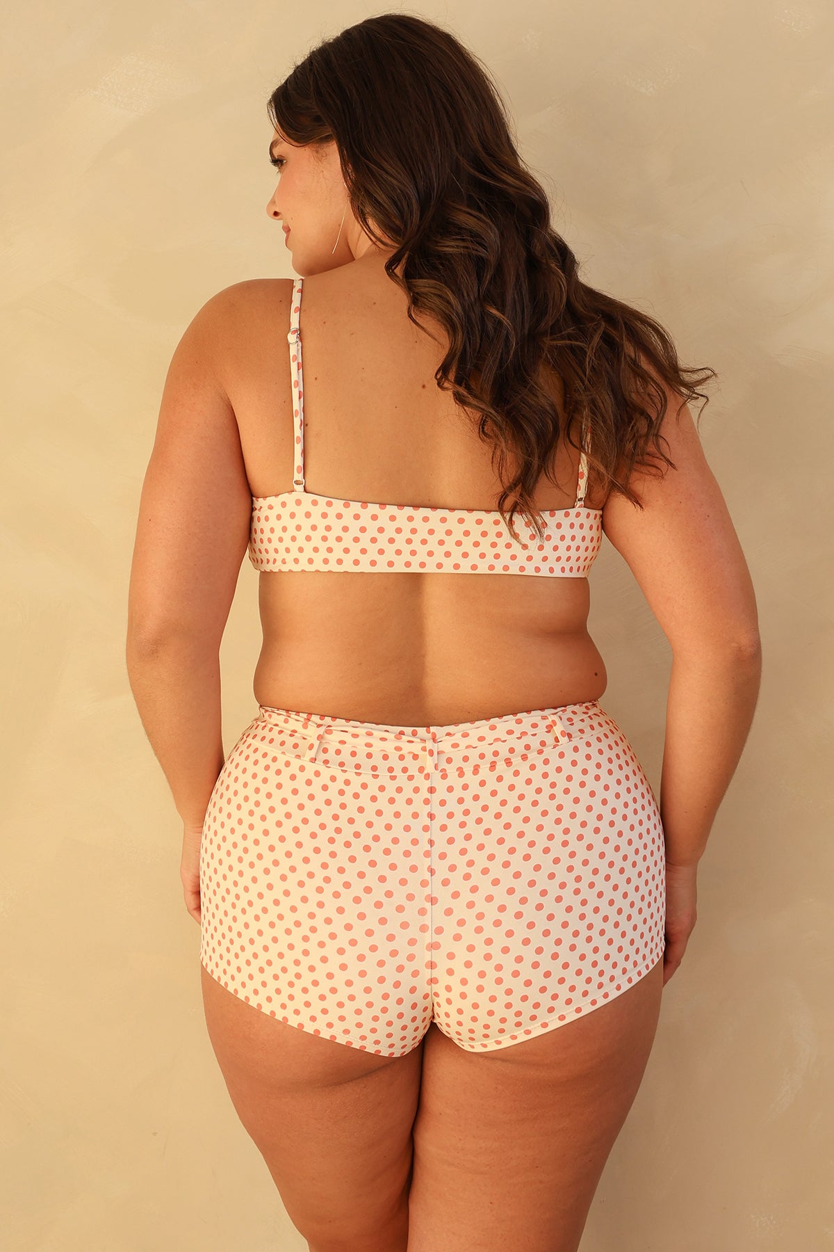 Cheeky swim shorts made with an elastic waist and a cute belt trim. These versatile shorts will be your new go-to when you want some extra coverage. Pair with the matching Palm Top to complete your set.