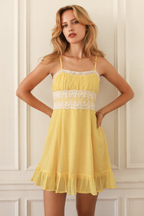 Our new sundress features the cutest lace overlay and trim, stretchy fabric at the back and adjustable straps for a customizable fit.