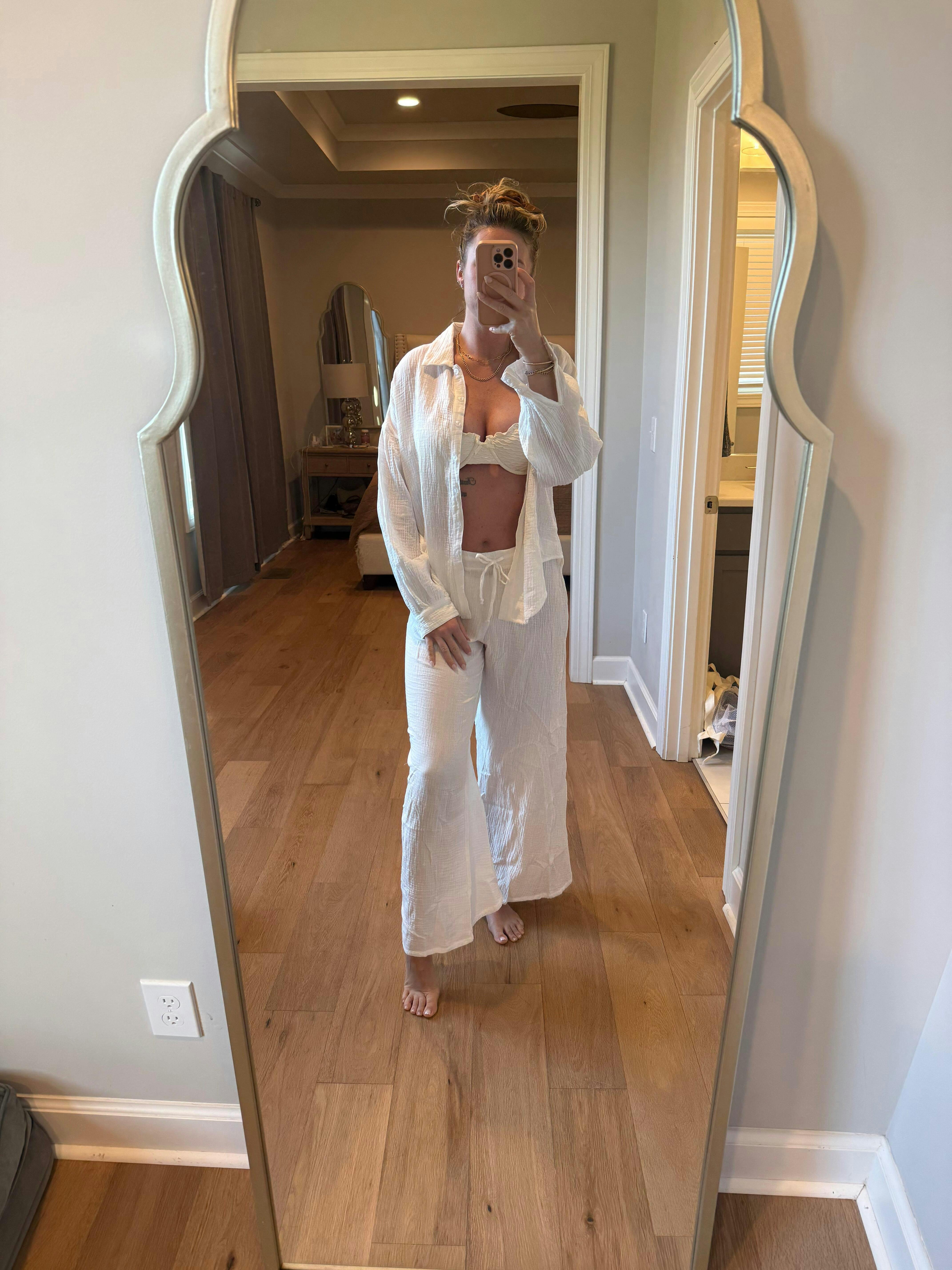 This top is surprisingly soft given the linen material. I will definitely be wearing this over my swimsuit on beach days! I would say the fit leans baggy which is perfect for a coverup.