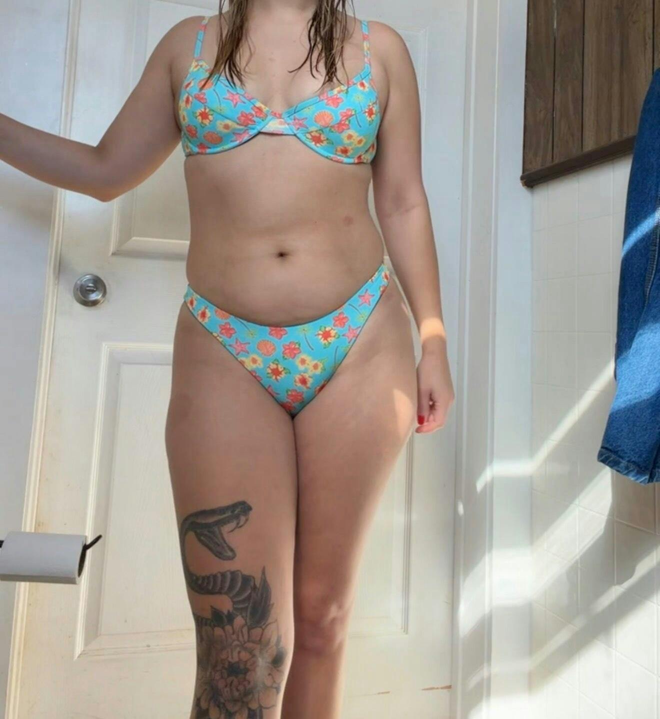 I knew I ordered cheeky bottoms but if you have a decent to above average butt, these will essentially be a thong since your butt will eat the bottoms. Be warned. Also compared to the other bottoms I ordered this material seems tighter making this fit less flattering.