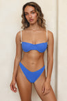 Our new underwire top features contrast binding, mini bow details and adjustable straps. Designed to match our new Raglan Bottom.