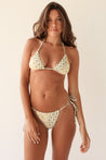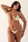 A classic scrunch bikini bottom featuring mixed prints. With adjustable ties on each side. Pairs perfectly with our matching Ava Top.