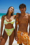 Our new men’s swim trunks are designed to match perfectly with our favorite bikinis. Featuring a relaxed fit, functional pockets, an elastic waistband and an adjustable drawstring.