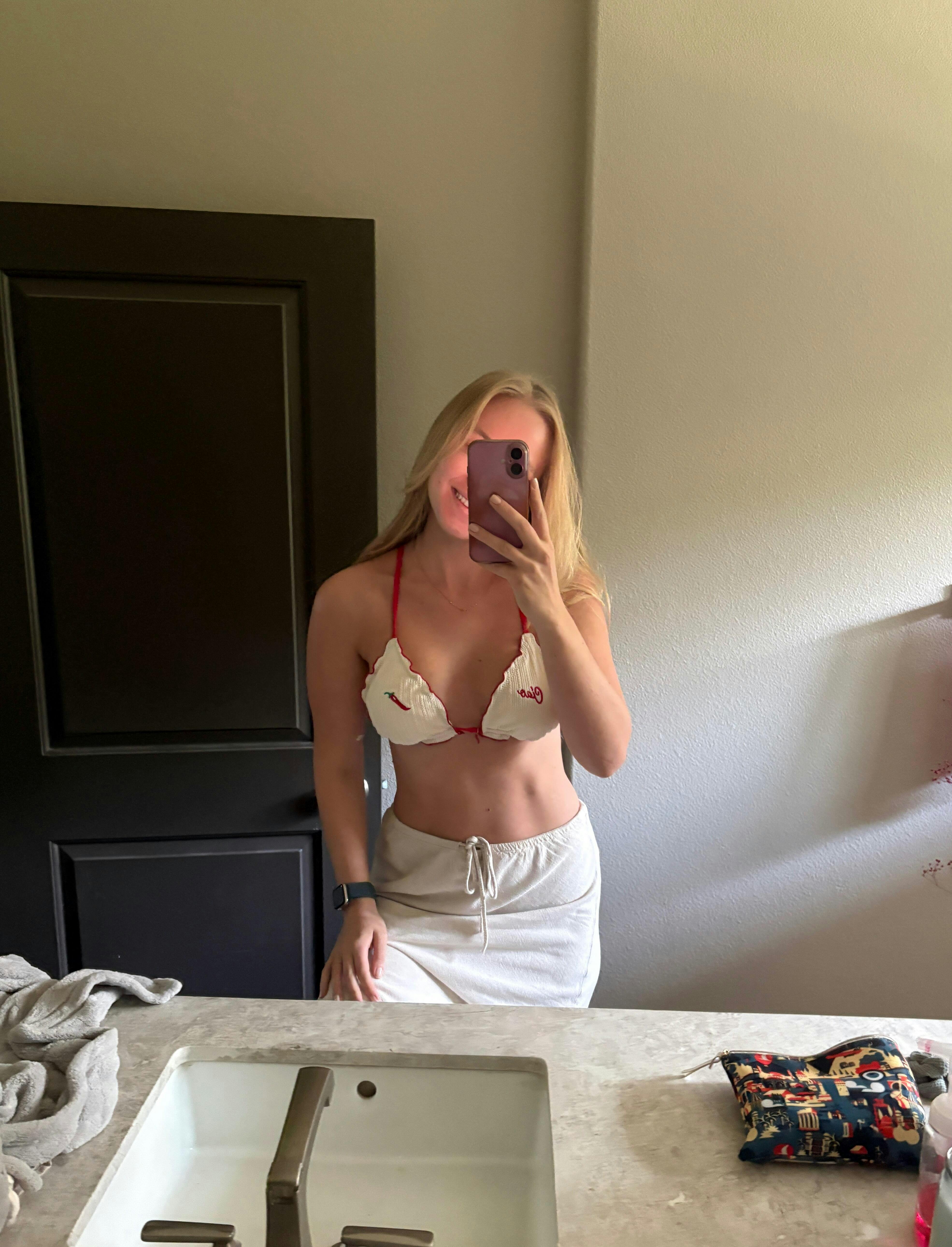 Our new triangle-style bikini top features ruffled trim and lemon and pepper icons from our Italia collection. Pairs best with our matching new Grazia Bottom.